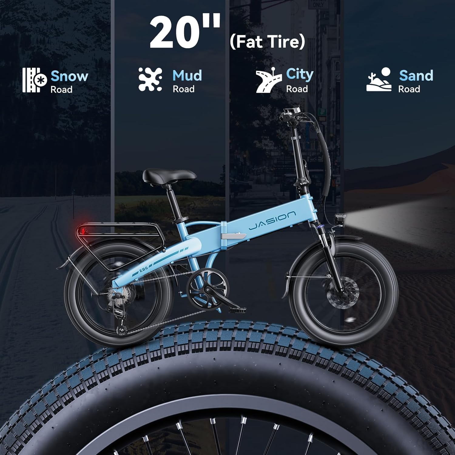 You’ll love the Jasion Electric Bike because it combines power, speed, and reliability in one sleek package. The 1000W motor accelerates effortlessly, even on inclines, making your ride smooth and exciting. Its 20″ fat tires give unmatched stability, so you can confidently ride on streets, gravel, or trails. The folding frame makes storage and transport easy for apartment living or road trips. Long-range 45-mile rides let you explore without worrying about battery life.